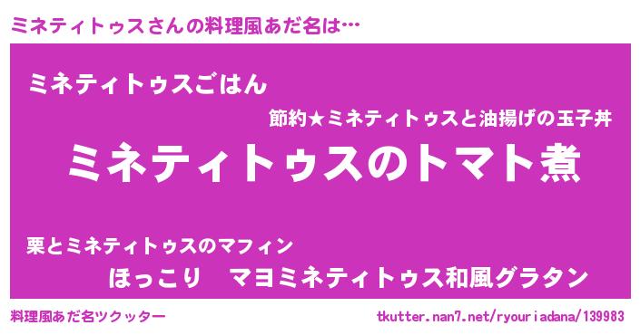 | 男性向けラノベタイトル風あだ名 | 『おまえをオタクにしてやるから、俺をミネティトゥスにしてくれ! 』 |