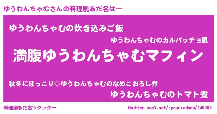 | 女子向けラノベタイトル風あだ名 | 『異世界で失敗しない100のゆうわんちゃむ』 |