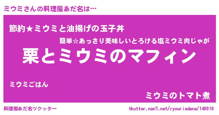 | ポケモン風あだ名 | 『ミウゴンZ』『ミウチュウ』 |