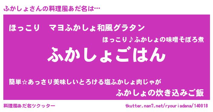 | 男性向けラノベタイトル風あだ名 | 『フカショスレイヤー』『ふかしょの憂鬱』 |