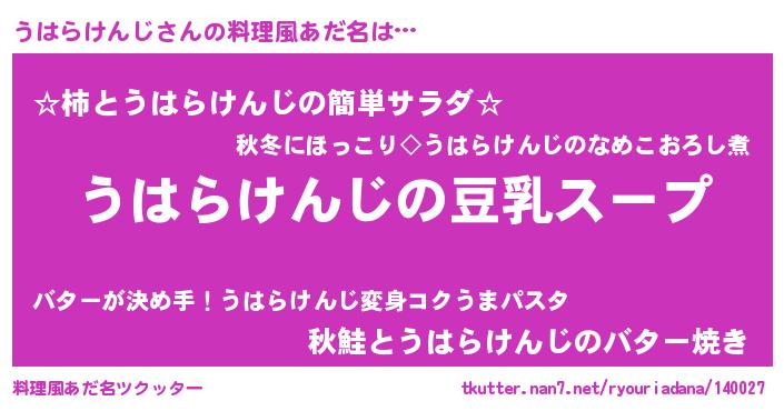 | 胡散臭い通販商品みたいなあだ名 | 『信頼と実績のサプリメント…その名も「うはらけんじ」』 |