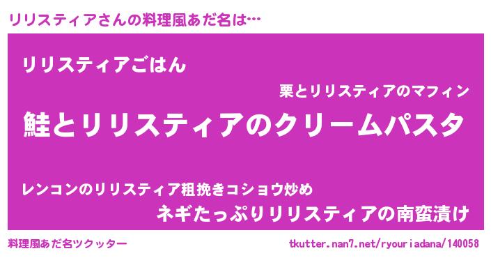 | 男性向けラノベタイトル風あだ名 | 『ノーゲーム・ノーリリスティア』 |