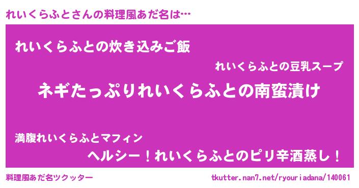 | ヘコむあだ名 | 『れいもー』『れいっ子』『なまこ酢』 |
