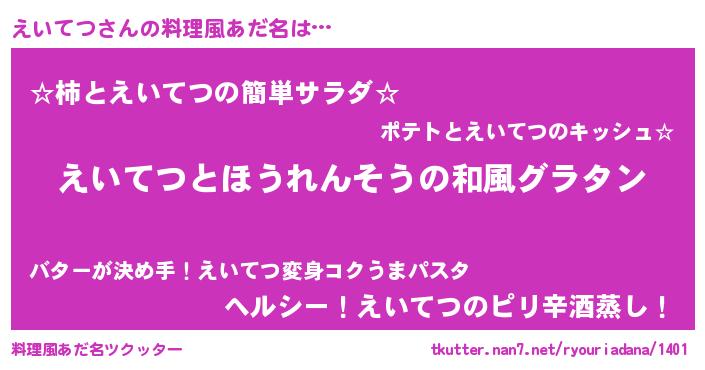 | 男性向けラノベタイトル風あだ名 | 『転生したらえいてつだった件』 |