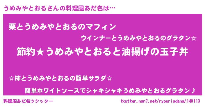 | 男性向けラノベタイトル風あだ名 | 『ウメミヤトオルアートオンライン』 |