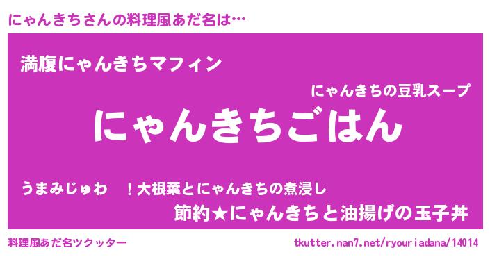 | 男性向けラノベタイトル風あだ名 | 『ニャンキチスレイヤー』 |