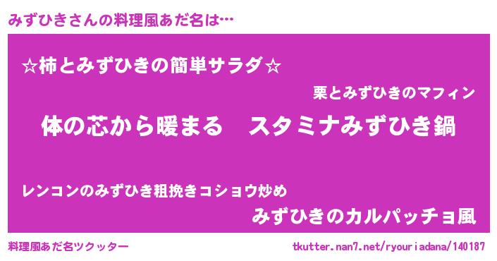 | 意味不明あだ名 | 『みずひきフォーエバー』『自称みずひき』 |