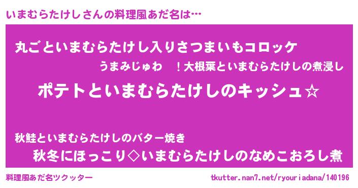 | 女子向けラノベタイトル風あだ名 | 『いまむらたけしの卵を拾いまして』 |