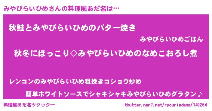 | 意味不明あだ名 | 『永久保存みやびらいひめ』 |