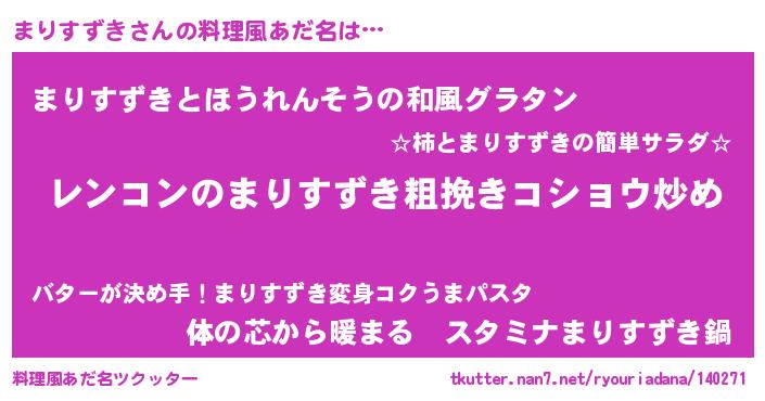 | 意味不明あだ名 | 『自称まりすずき』『永久保存まりすずき』 |