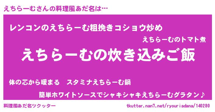 | 意味不明あだ名 | 『自称えちらーむ』『永久保存えちらーむ』 |