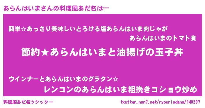 | 胡散臭い通販商品みたいなあだ名 | 『モテモテ間違いなし霊験あらたかなお札…その名も「あらんはいま」』 |