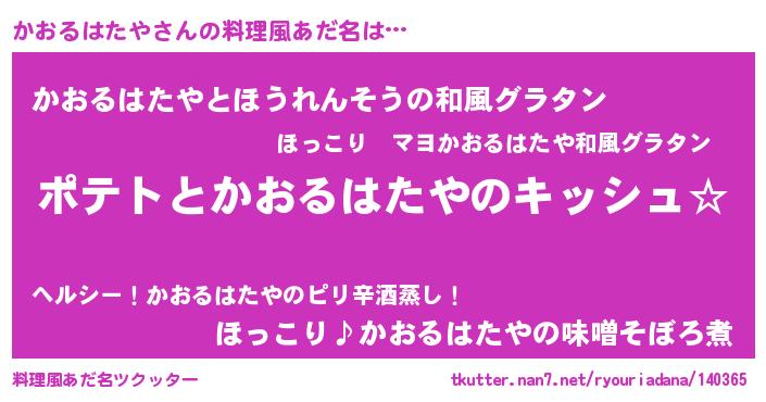 | 女子向けラノベタイトル風あだ名 | 『かおるはたやの卵を拾いまして』 |