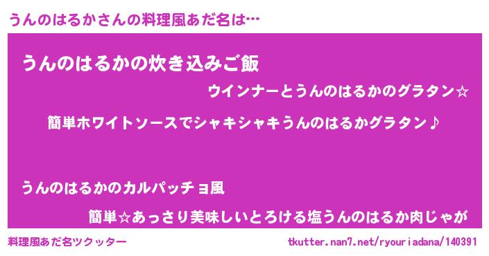 | 意味不明あだ名 | 『とにかく怪しいうんのはるか』 |