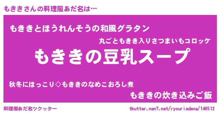 | ヘコむあだ名 | 『もきっぺ』『酢こんぶ』 |