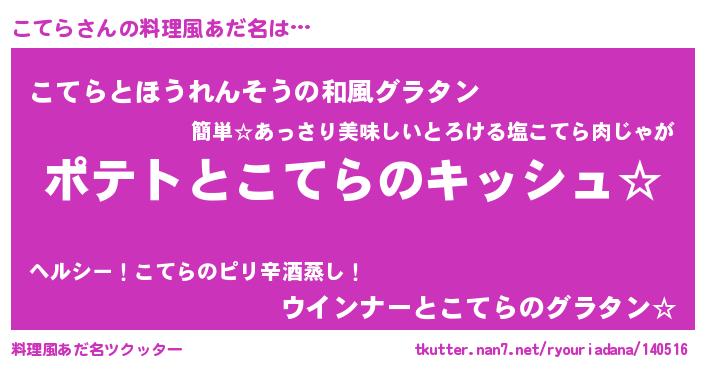 | 胡散臭い通販商品みたいなあだ名 | 『伝統あるサプリメント…その名も「こてら」』 |