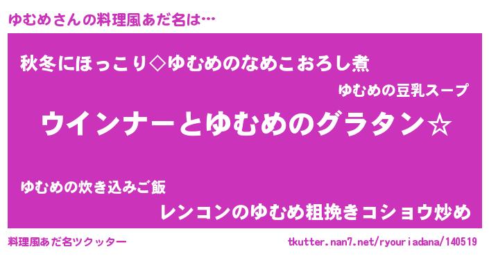 | 意味不明あだ名 | 『ゆむめフォーエバー』『自称ゆむめ』 |