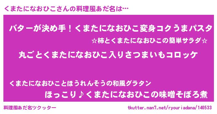 | 欧米人風あだ名 | 『ダレノガレくまたになおひこ』 |