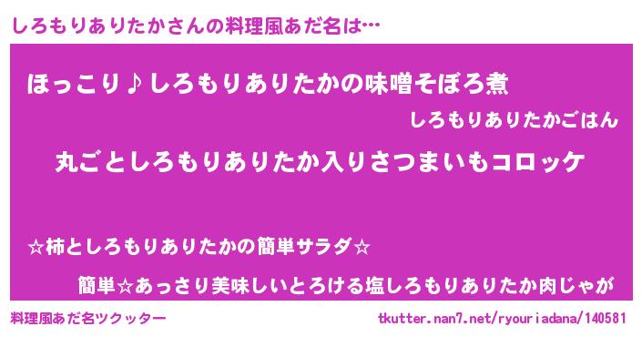 | ヘコむあだ名 | 『しろにゅー』『しろもりありたか(苦笑)』 |
