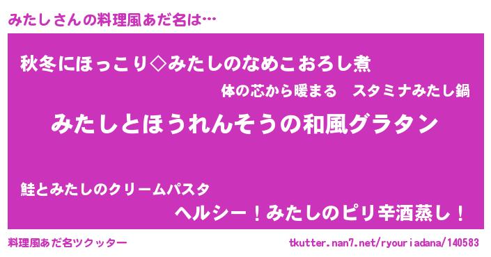 | 胡散臭い通販商品みたいなあだ名 | 『テレビで話題のアガリクス…その名も「みたし」』 |