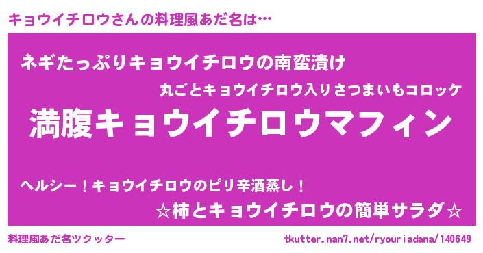 | 意味不明あだ名 | 『永久保存キョウイチロウ』 |