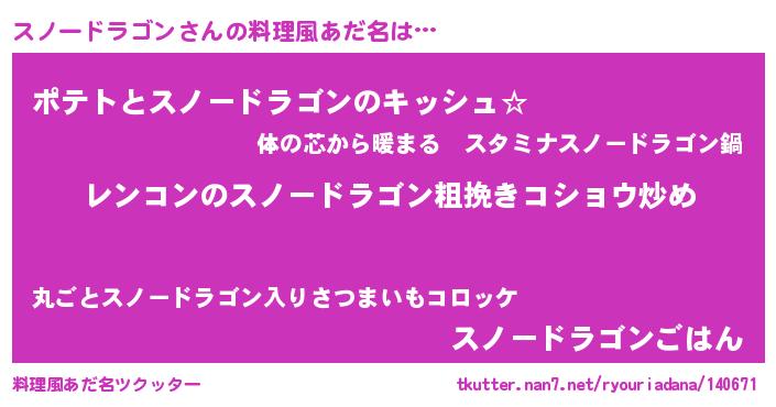 | 女子向けラノベタイトル風あだ名 | 『スノードラゴンなんてお断りですっ。』 |