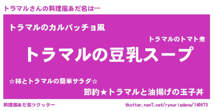 | 男性向けラノベタイトル風あだ名 | 『ダンジョンにトラマルを求めるのは間違っているだろうか』 |