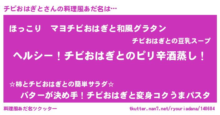 | 男性向けラノベタイトル風あだ名 | 『Re:チビおはぎとから始める異世界生活』 |