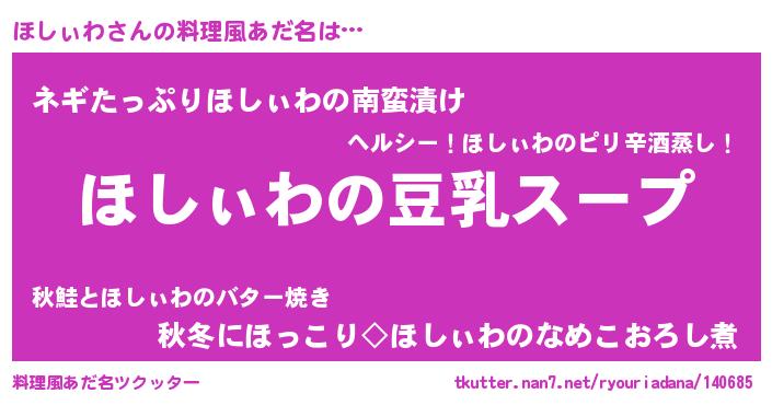| 意味不明あだ名 | 『とにかく怪しいほしぃわ』 |