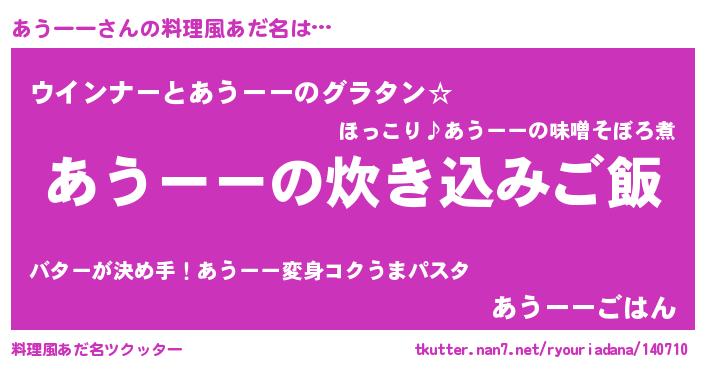 | ヘコむあだ名 | 『なまこ酢』『あうもー』『あうお』 |