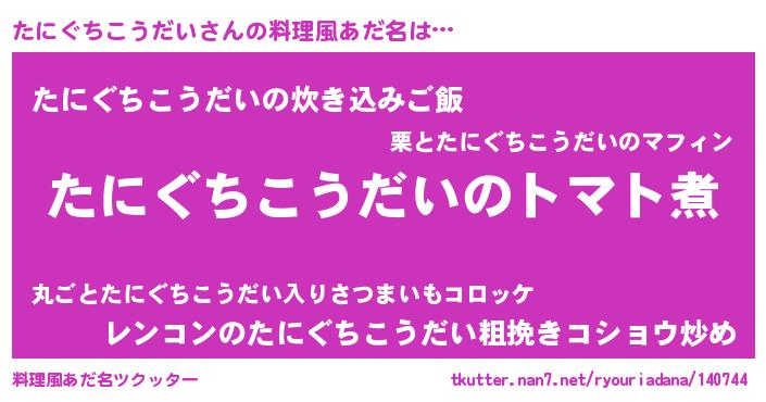 | 男性向けラノベタイトル風あだ名 | 『おまえをオタクにしてやるから、俺をたにぐちこうだいにしてくれ! 』 |