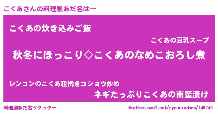 | 意味不明あだ名 | 『ペロリンこくあ』『自称こくあ』 |