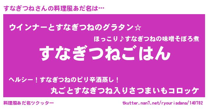 | 男性向けラノベタイトル風あだ名 | 『転生したらすなぎつねだった件』 |