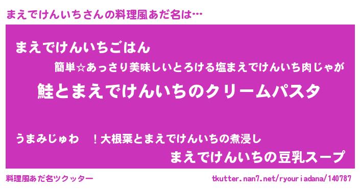 | 男性向けラノベタイトル風あだ名 | 『ノーゲーム・ノーマエデケンイチ』 |