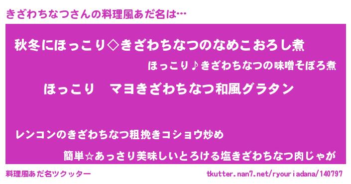 | 女子向けラノベタイトル風あだ名 | 『悪役きざわちなつに転生したようですが、知った事ではありません』 |