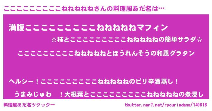 | 胡散臭い通販商品みたいなあだ名 | 『前代未聞の健康食品…その名も「こここここここここねねねねね」』 |