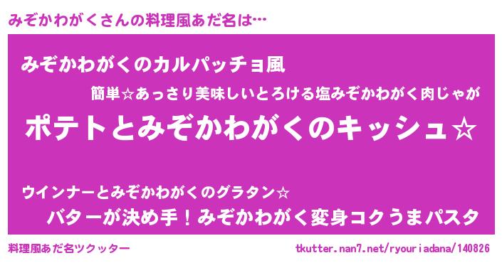 | ヘコむあだ名 | 『みぞを』『みぞかわがく(小並感)』 |