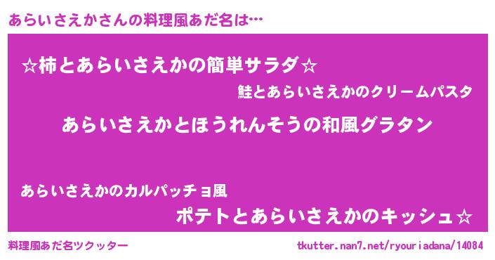 | ヘコむあだ名 | 『あらを』『あらいさえか(震え声)』 |