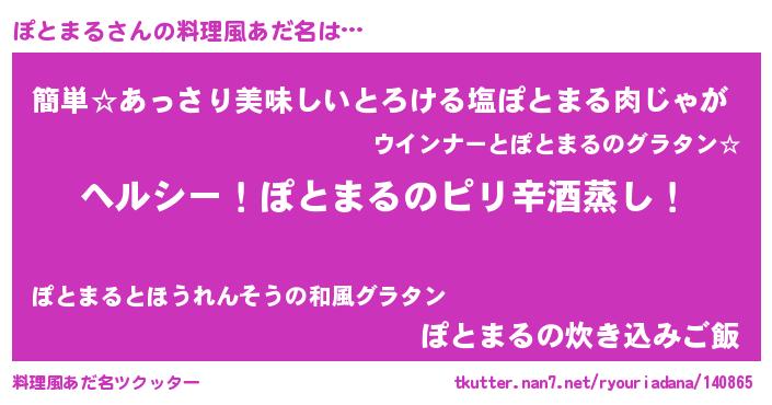 | 男性向けラノベタイトル風あだ名 | 『Re:ぽとまるから始める異世界生活』 |