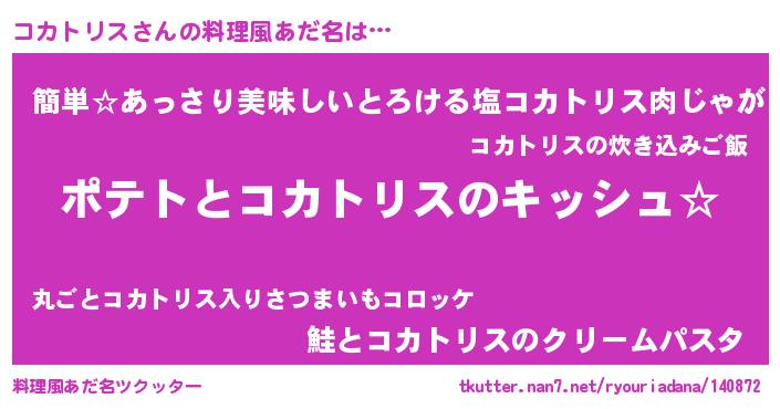 | ヘコむあだ名 | 『コカっちょ』『コカトリス(笑)』 |