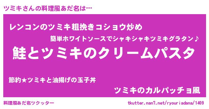 | 女子向けラノベタイトル風あだ名 | 『死神ツミキの再婚』『ツミキ様がみてる』 |