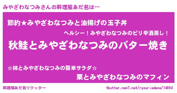| 胡散臭い通販商品みたいなあだ名 | 『来世でも幸せになれる健康食品…その名も「みやざわなつみ」』 |