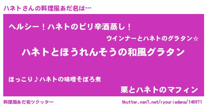 | ヒーロー風カッコイイあだ名 | 『最強戦士ハネト』『ウルトラハネトマン』 |