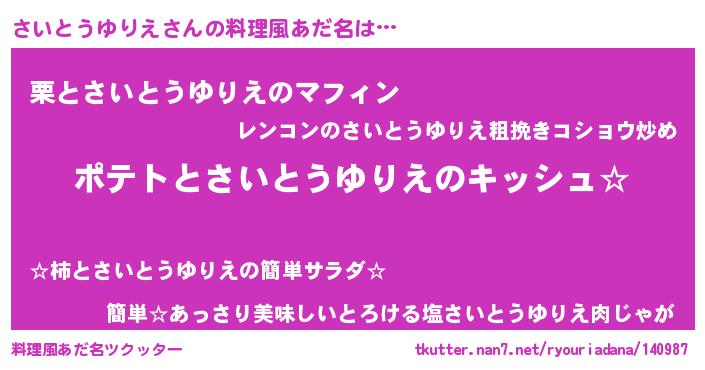 | ヘコむあだ名 | 『さいっちょ』『さいとうゆりえ(笑)』 |