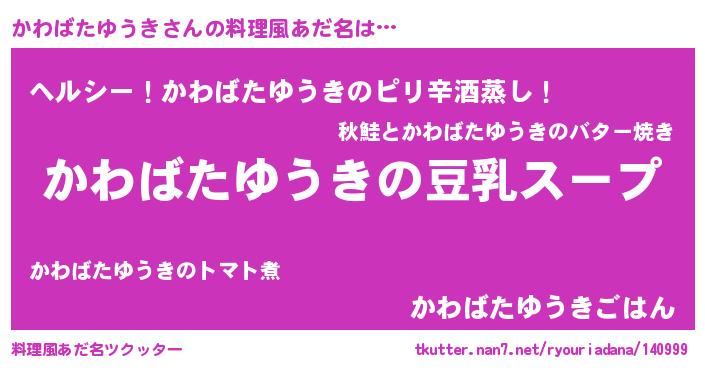 | ヘコむあだ名 | 『かわっちょ』『かわばたゆうき(小並感)』 |