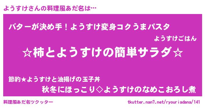 | 男性向けラノベタイトル風あだ名 | 『緋弾のヨウスケ』『ヨウスケスレイヤー』 |