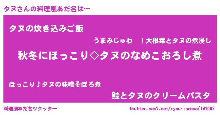 | 男性向けラノベタイトル風あだ名 | 『タヌに滅ぼされるだけの簡単なお仕事です』 |