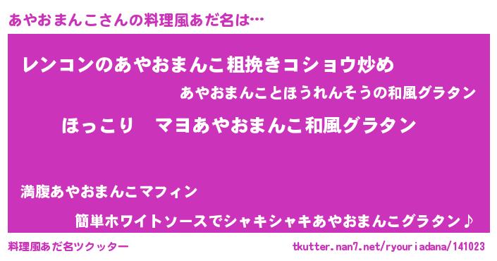 | 意味不明あだ名 | 『住所不定無職あやおまんこ(68歳)』 |