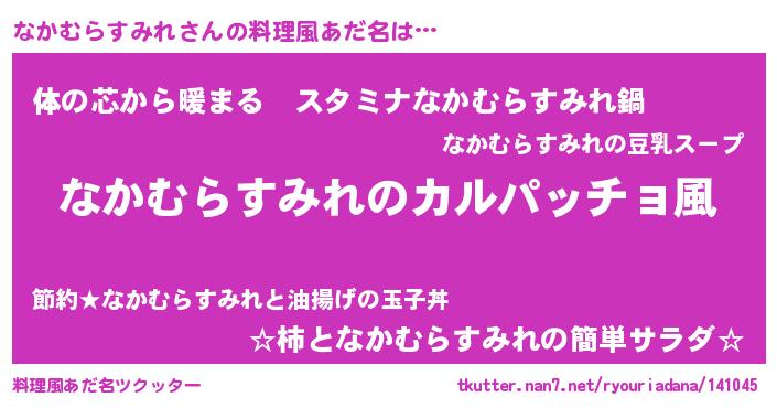 | 意味不明あだ名 | 『住所不定無職なかむらすみれ(10歳)』 |