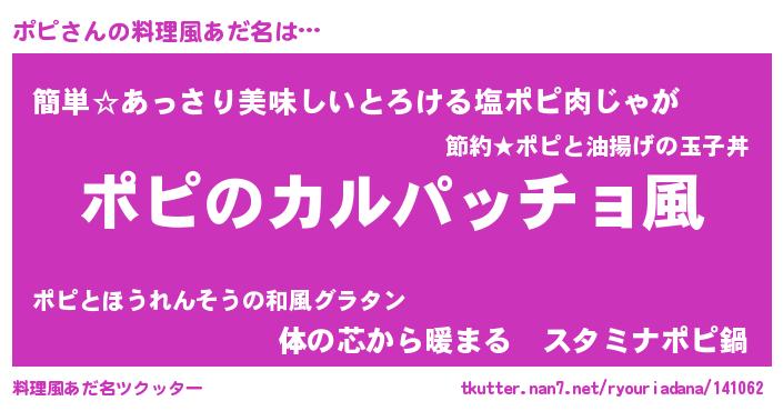 | ポケモン風あだ名 | 『ポーピイ』『ゼニポピ』『ポピダネ』 |